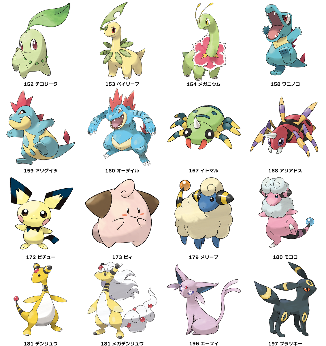 チコリータとワニノコは御三家として登場します。レジェンズアルセウスのように最終進化のみリージョンフォームになる可能性があります。