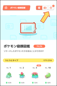 メニューからポケモン寝顔図鑑に進み、右上にあるハートのアイコンを選ぶことでフレンドメダルを確認することができます。