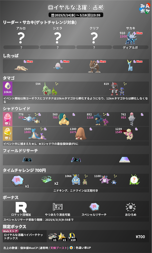 今回は、シャドウディアルガとしたっぱポケモンも新実装があります。