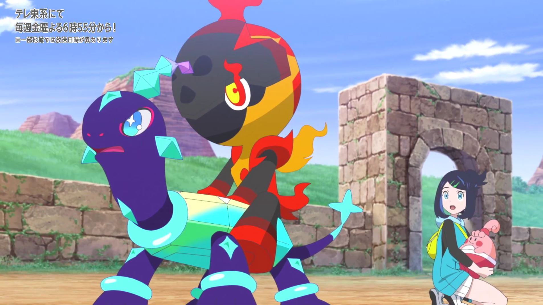 明日のアニポケは、ドットとボタンが初バトル!