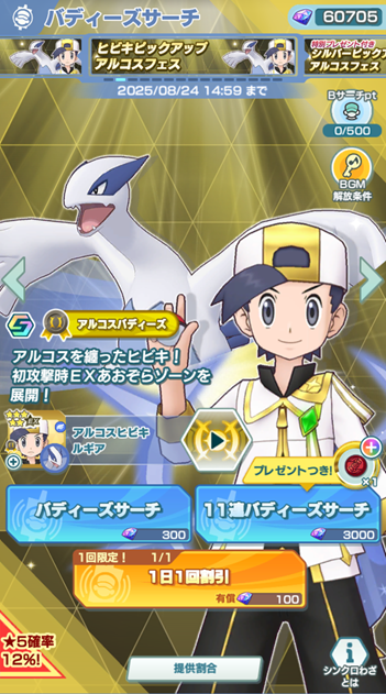 本日から、「アルコスヒビキ&ルギア」がバディーズサーチに登場に登場しています。