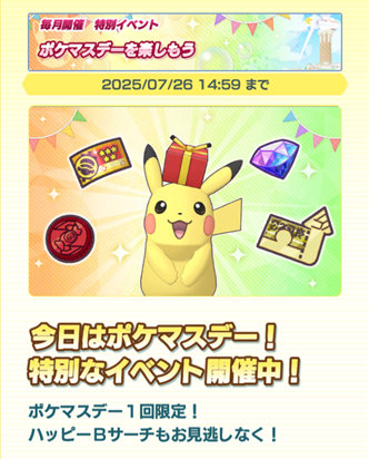 ポケマスデー1回限定「★5確定Bサーチ」&「ハッピーBサーチ」