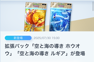 本日から拡張パック「空と海の導き ホウオウ」と「空と海の導き ホウオウ」が登場しています。