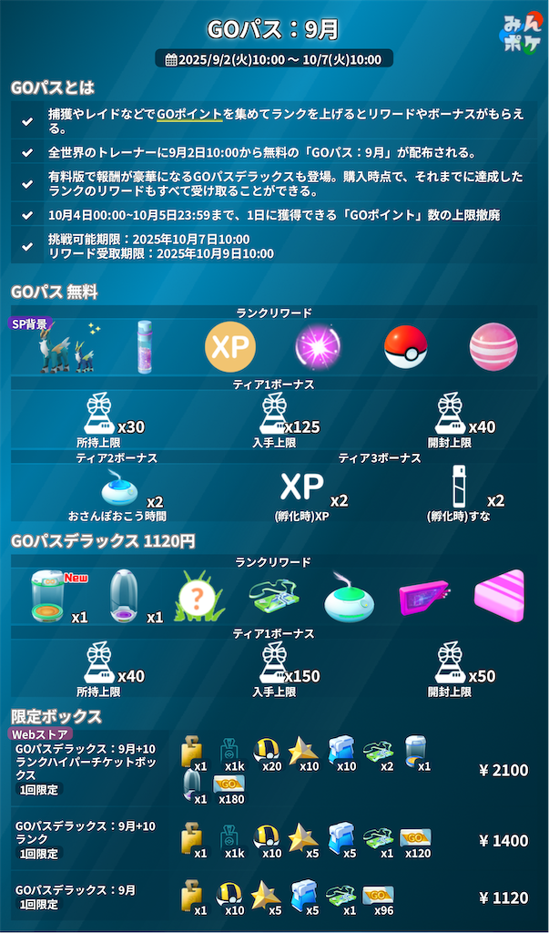 10時から9月のGOパスが配布されますが仕様が変更になってます。
