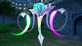 メガシンカによって脳が肥大化し、大幅に向上したサイコパワーは身体から溢れ、光り輝いています。この色鮮やかな光には、強力な催眠術の効果をさらに高める作用があり、人格や記憶までもを自在に書き換え、別人のようにしてしまうほどの恐ろしい力を持っています。