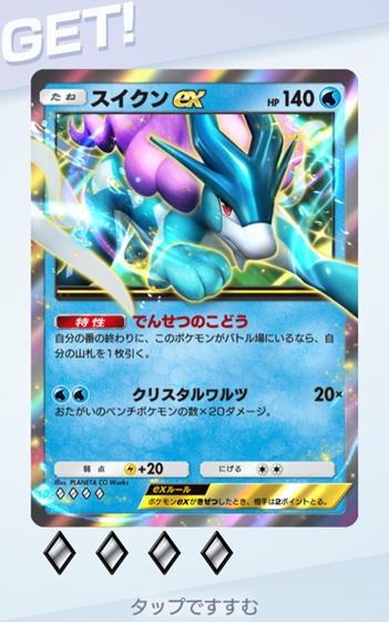 自分は早速「スイクンex」をゲットできました。すでに2枚持ってたけど…