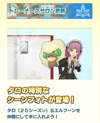 トレーナーズサロンの方にも、タロの特別なシーンフォトが追加されていますよ。