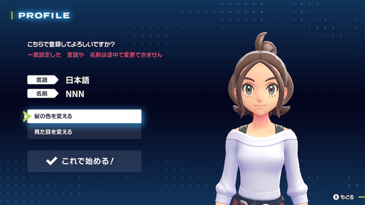 この選べるところで一度セーブを書いておくと、性別は厳選できます。しかし、ここでポケモンのステータスが確認できないので個体値や性格はわかりません。そして、IDも確認できない仕様になっています。そのためもう少し進めます。