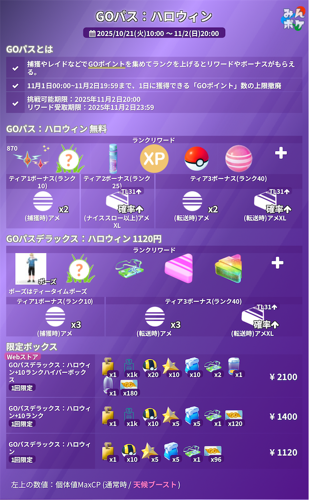 ・報酬 ポーズ、ランクに合わせてボーナス有り(捕獲アメ3倍、転送時飴3倍・XL確率さらにアップなど)