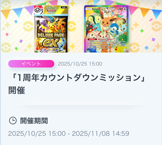 期間中最低5回はポケポケにログインしないと、「イーブイex(プロモカード)」はゲットできないので、注意が必要ですよ。