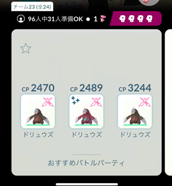 「キョダイマックスダストダス」はどくタイプということで、今回はドリュウズ中心で挑戦!