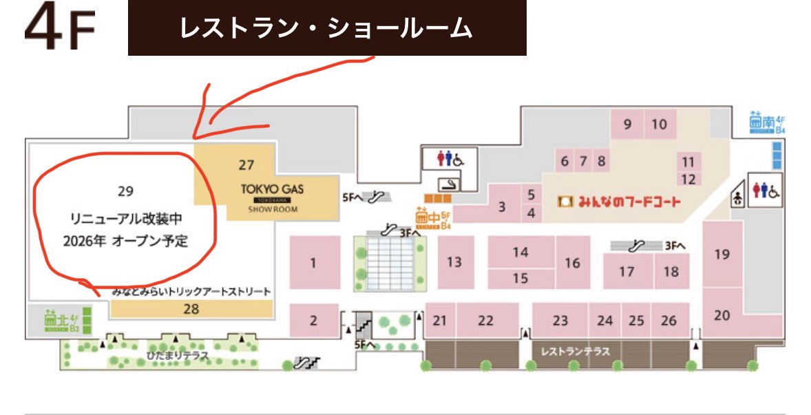 推測の域を出てませんが、新ポケセンヨコハマか(?)と噂されているマークイズみなとみらい4階の改装スペースです。確かにシャッター4×6個分の広大なスペースですね。