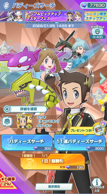 ポケマスデー1回限定!「ハッピーBサーチ」「★5確定BサーチA」「★5確定BサーチB」