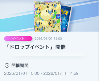 【ポケポケ】メリープの「ドロップイベント」開催中! ポケポケ X Facebook はてブ Pocket LINE コピー 2026.01.02 AmazonAuto Amazon Links: プロダクトが見つかりません。 どうも、こんばんは。 元旦より、ポケポケの方で「メリープ」の「ドロップイベント」が開催されています。 今年は午年なのですが、なぜか羊がチョイスされています。 どうせなら「メガデンリュウex」をドロップしてほしかったなぁ……。 「メリープ」のドロップイベント 開催期間 ゲットできるカード 終わりに… 「メリープ」のドロップイベント 開催期間 2026年1月1日(木)15:00~1月11日(日)14:59 ゲットできるカード メリープ ワルビアル ウインディ コイキング チルット 終わりに… 自宅に戻ってきましたが、寒すぎてコタツの中が心地よく感じますね。 ランキング参加中ポケモン ランキング参加中ポケモン好きな人達と仲良くいくグループ ランキング参加中ゲームブログやってる人の集まり場!