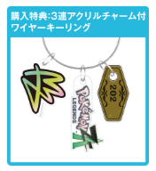購入特典として、3連アクリルチャーム付ワイヤーキーリングが付属します。