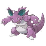 『赤・緑』で初登場したニドキング。ニドリーノに「つきのいし」を使うことで進化します。