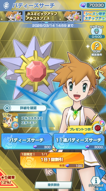バディーズサーチには「アルコスカスミ&スターミー」が登場中です。
