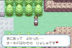 ニビシティから東(右方向)に進もうとするとオーキド博士の助手が待っており、ママからの手紙とともにランニングシューズがもらえます。