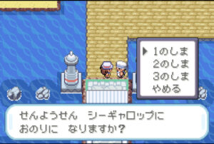 戻る時はそれぞれの島の港から行き先を選び、クチバシティへ戻ることができます。