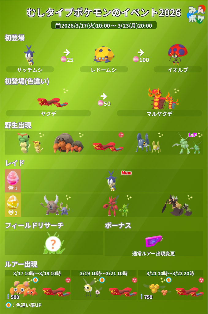 ・むしタイプポケモンのイベント2026(10時~23日20時まで)