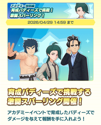 本日から、アカデミー特別編「育成バディーズで挑戦!激闘スパーリング!」が開催されています。