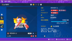 どうも、こんばんは。 週末はポケモンGOで「年末コミュニティ・デイ」が開催されていますが、各コミュニティ・デイに参加してきた自分にとっては優先度は低め。 という訳で、今回は最強ドラパルトのテラレイドバトルに参加してきました。 登場しているドラパルトのテラスタイプがドラゴンタイプということで、今回は攻略情報からマホイップを使用することにしました。 ドラパルトの特性「のろわれボディ」が厄介ということで、マホイップの特性「アロマベール」で対策。ただ、たまに「シャドーボール」で特防が下がるのは嫌でしたが、1度も倒されることなく戦うことができました。 無事、最強ドラパルトを討伐&ゲットできました。 あと…